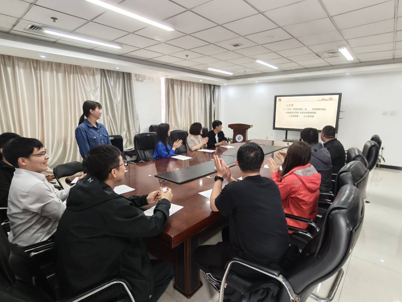 竞赛采取预赛与决赛相结合的形式。在预赛阶段,各支部积极组织全体党员开展线上答题选拔,营造了人人参与、认真备赛的浓厚氛围。经过层层选拔,各支部分别推选出一支优秀代表队进入决赛。决赛设置必答题、抢答题、风险题等多个环节,题目内容涵盖党的二十大及二十届四中全会精神、党章党规、党史知识以及能源环境领域相关国家战略部署。比赛中,参赛队员思维敏捷、配合默契,展现出扎实的理论功底和昂扬的精神风貌,现场气氛紧张热烈、精彩纷呈。